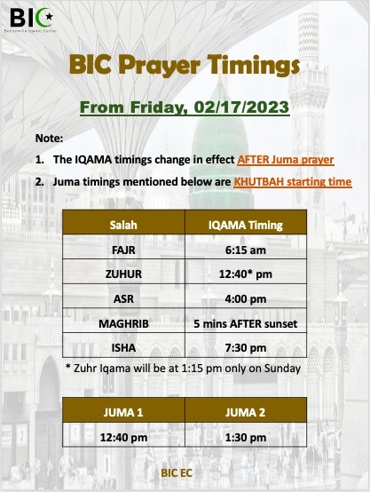 *Announcements* Assalaamu Alaikum Sisters and Brothers. *1.* IQAMA time changes for this week Fajr: 6:15 am *Note:* Only on Sunday the the Zuhr will be at 1:15 pm to accommodate Weekend School Kids and parents ...
